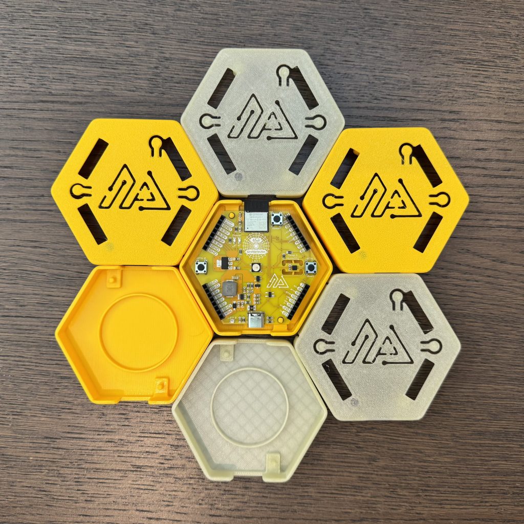 Clicky. Snap-fit. Pinouts visible. Shout-out to Ahmad AlNuaimi and Saeed AlMheiri for designing this case that protects Shabakah v4 from daily abuse while keeping all